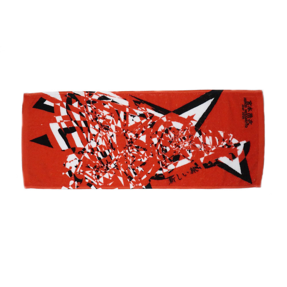 ツアーのキービジュアルをデザインした、赤が目を引くフェイスタオルです。今治産のボディからこだわったプリント仕様です。